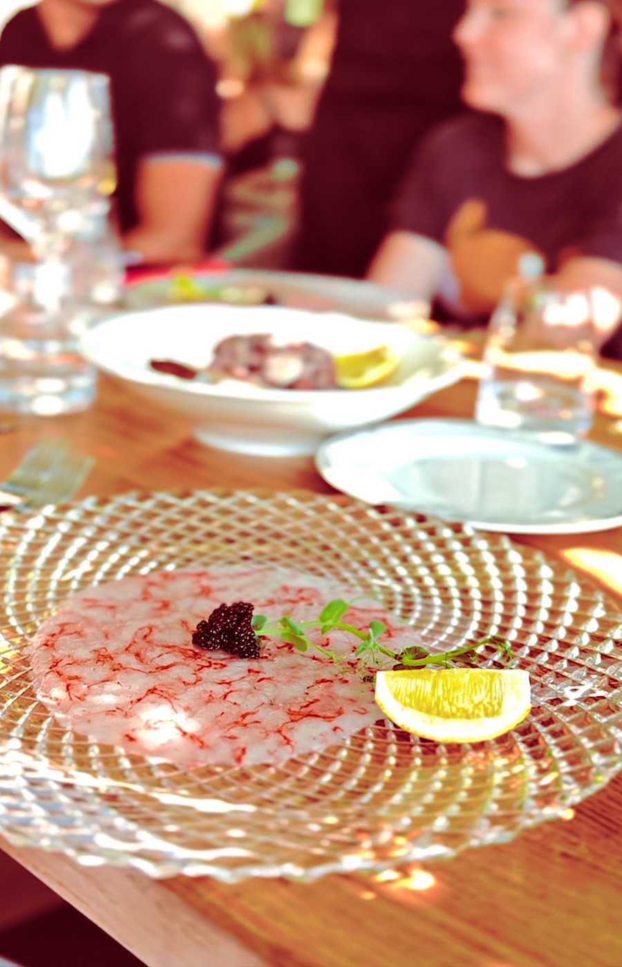 za prvo smo predjelo dobili snježnocrveni sarpaccio od velikih kozica sa žličicom pravog kavijara