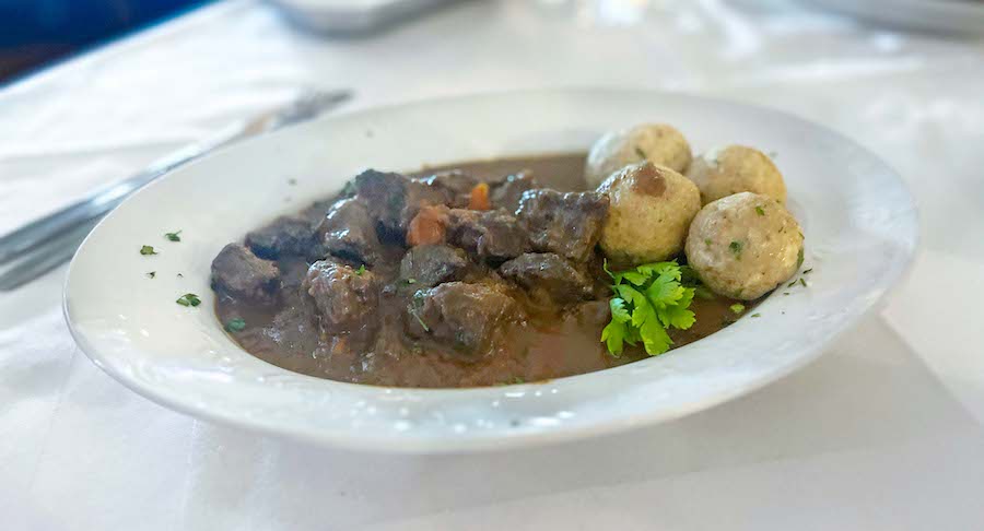 Gulaš od medvjeda već je bio bolji, propisno pikantan, dok su knedle koje smo dobili uz gulaš bile sasvim solidne. Medvjeđi gulaš intenzivno je i opako jelo, ponešto žilavije nego što bi htjeli, međutim, takvo je meso medvjeda. Za desert smo dobili pečenu štrudlu s borovnicama koja je bila savršena. Kuhinji Bitoraja sasvim malo nedostaje za bolju i ambiciozniju hranu. Kad bi se riješili nekih amaterskih problema, poboljšali prezentaciju i sasvim malo rafinirali okuse, bili bi vrijedni pažnje u gastronomski pustom području. Vinska lista je korektna, ali nefokusirana. Ranu večeru platili smo 100 eura za dvoje.