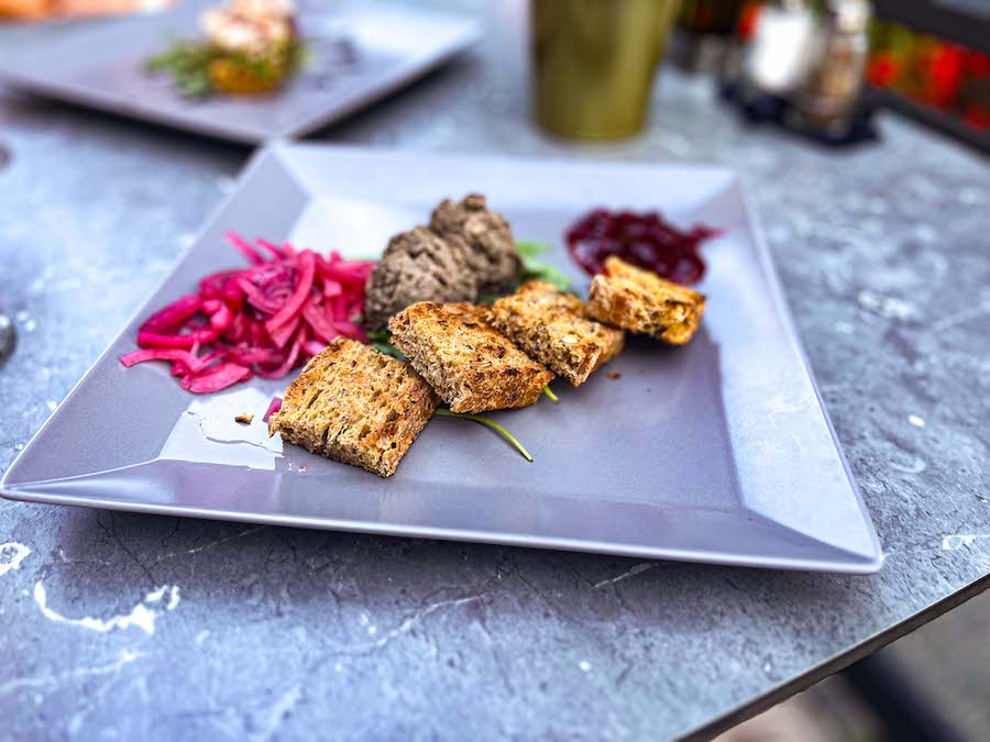 U Evi smo dakle s kratkog i primamljivog jelovnika za predjelo naručili pastrvu na bruschetti i paštetu od divljači. Oba su predjela bila sasvim dobra, ali bi bila za razinu bolja da Eva ima malo bolji kruh. Dimljena pastrva je čvrsta i zavodljivog okusa, pašteta s dodatkom ljubičastog luka i džema od šumskog voća je vrlo dobra.