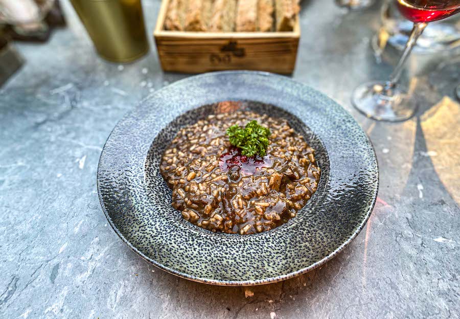 Glavna jela su još bolja. Rižoto od divljači kuhan je školski, ali je proveo otprilike 5 minuta previše u tavi pa je nažalost došao premekan. Ipak, okusom i teksturom radi se o iznenađujuće dobrom rižotu, u kojem glavnu ulogu igraju intenzivno meso divljači i gljive. Ultimativno šumsko jelo za početak jeseni.