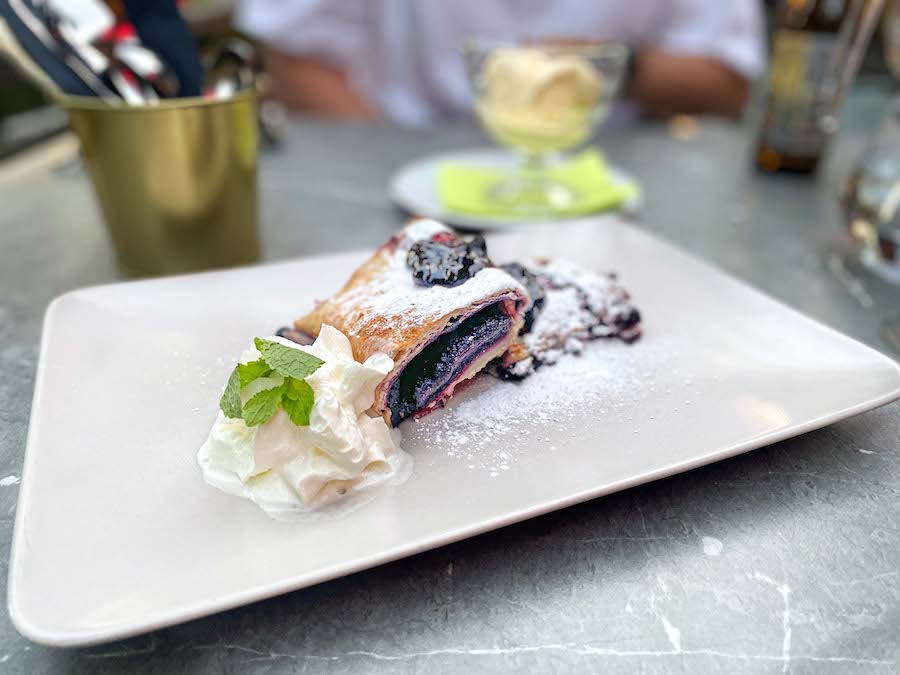 Za desert smo naručili štrudlu od borovnice koja je bila apsolutno savršena, bez ijedne zamjerke. Borovnice nisu bile ni preslatke ni prekisele. Eva je ponovno dokazala i potvrdila svoj status najboljeg goranskog restorana, a voljeli bismo i da je konkurencija malo bogatija i jača.