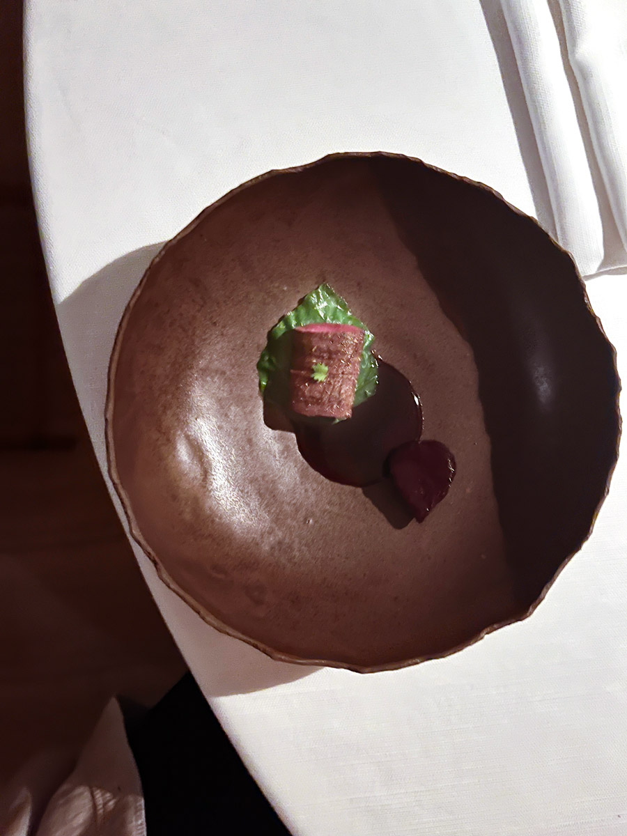 Upravo ovdje je prilično jasno koliko važnu ulogu u afirmaciji i nekih hrvatskih namirnica može imati restoran s tri zvjezdice. Sirevi istarske Kumparičke pojavljuju se u nekoliko ključnih trenutaka večeri, a uz jela se toče i neka hrvatska vina poput Andreisa od Vinas Mora, u koji se simpatični par Amerikanaca pored nas doslovno zaljubio. Sva vina koja smo probali u vinskom pairingu vrlo su dobro funkcionirala, posebno ona malih francuskih vinarija, dok je bezalkoholni pairing među boljima koje smo probali, posebno kućna coca cola poslužena kao aperitiv koji odmah stvara ovisnost.