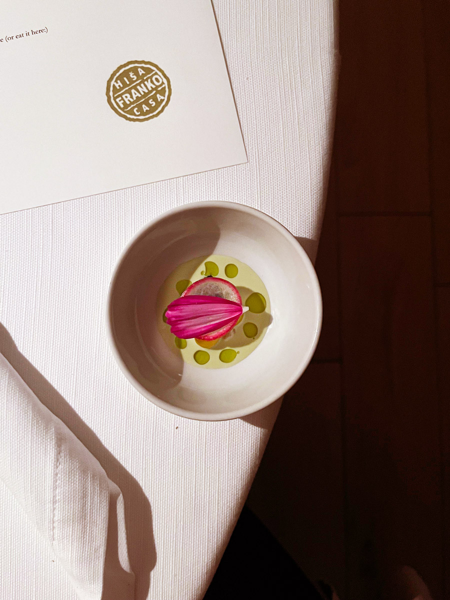 U danu kad su se simbolično izmjenjivali sunce i kiša, Hiša Franko je pokazala zašto zaslužuje tri zvjezdice. Kuhanje Ane Roš i njezine izvršne chefice Yvonne Simon iz Kalifornije, precizno je, pročišćeno i gotovo eterično, perfektna simbioza mjesta i okusa. Hiša Franko je Kobarid, Kobarid je Hiša Franko. U ovom dijelu svijeta nećete naći mjesto koje s više osobnosti, lakoće, profinjenosti i osjećaja prikazuje terroir na tanjurima.