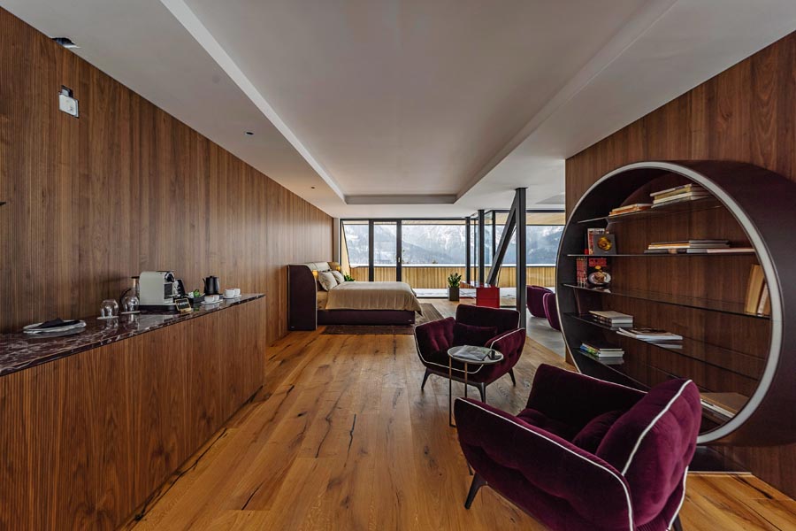 Na prostranoj se terasi nalazi otvoreni grijani bazen s pogledom na planine, dok je ograda terase pretvorena u mali organski povrtnjak sa salatama, aromatičnim biljem i čilijima koje vlasnici osobno uzgajaju. Apartmani su ogromni, s walk in tuševima, golemim samostojećim jacuzzi kadama i prvorazrednom Rebul kozmetikom, ručnici su debeli i meki, a pogledi koji kroz staklene stijene pucaju iz svake točke apartmana, od ulaza do kreveta i kade, vode vas u jedan sasvim drukčiji, autentičan svijet, toliko različit od osjećaja u najboljim hotelima na moru ili u velikim gradovima. Chalet Sofija otvorio se prije dva mjeseca i već sad je jedna od najvećih slovenskih turističkih atrakcija, s tim da je ovdje riječ o jako ekskluzivnom turizmu.