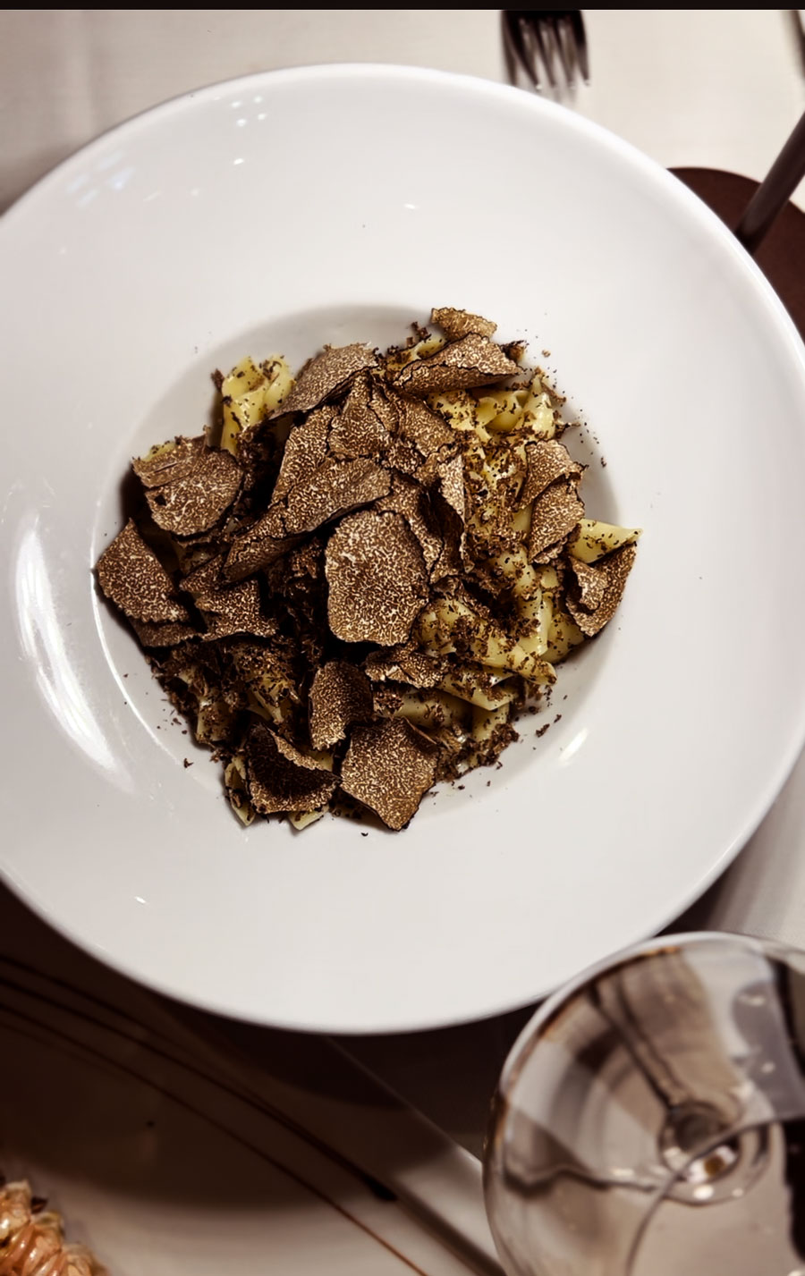 Jučer nas Buščina definitivno nije razočarala. Ručali smo sirove škampe i brancina, tanjur s nizom malih ribljih predjela poput salate od hobotnice, bakalara in bianco, paštete od tune i mariniranih inćuna, fuže s hrpom mirisnih crnih tartufa i velike creske škampe s gradela.