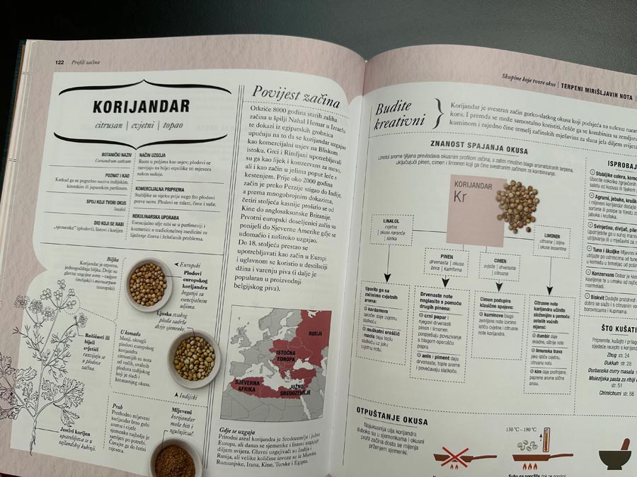 Značajan dio knjige bavi se upravo zakonitostima kombinacija začina, koje bi vam trebale omogućiti da kreirate vlastite začinske mješavine. Znanost o začina dr. Stuarta Farrimonda dobrodošao je doprinos onesviještenoj hrvatskoj sceni knjiga posvećenih gastronomiji.