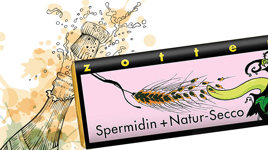 Zotter je, dakle, ove jeseni lansirao čokoladicu sa spermidinom i pjenušavim vinom, napravljenim charmat metodom. Spermidin u Zotterovoj čokoladi dolazi iz pšeničnih klica, vino je biološko, a čokolada mliječna, pojačana kremom od badema. Spermidin + Natur-Secco jako je zabavna, raspjevana, vesela čokolada, s naglašenim okusima kruške i citrusa koji vjerojatno stižu iz pjenušca.