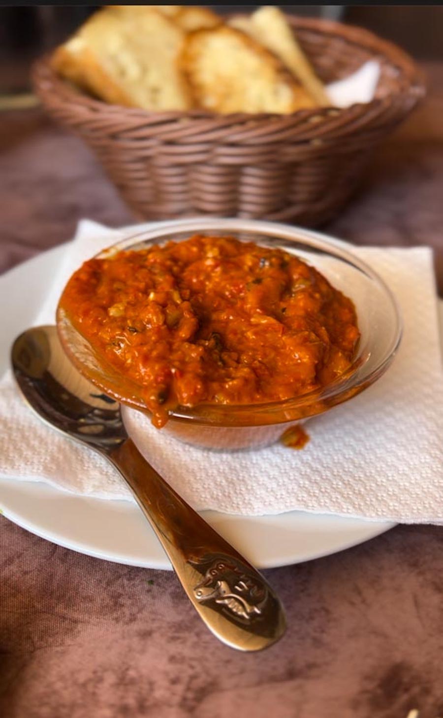 Gabrekova kuhinja u ajvar od paprika i patlidžana dodaje dvadesetak vrsta gljiva različitih tekstura: neke su usitnjene i kremaste, dok su druge nasjeckane na komadiće koji se osjete pod zubom, tako da Gabrekov ajvar ima netipičnu teksturu u kojoj se kremoznost miješa s blagim al dente efektom.