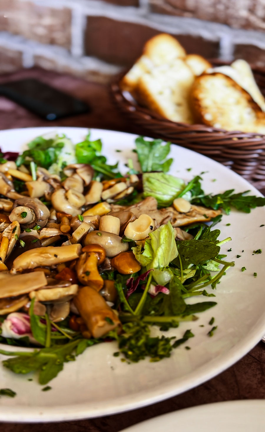 Na ulazu u Gabrekovo parkiralište stoji metar i pol visoki vrganj. Nažalost, Gabrek danas, tko zna zašto, nije imao svježe vrganje premda su zagrebačke tržnice već mjesec dana prepune vrganja. Gabrek nije imao ni sunčanice, jer su se sunčanice tek počele javljati na proplancima samoborskih i žumberačkih šuma: bit će spremne za otprilike tjedan dana. Ali nas je Gabrek zato ponudio odličnim ajvarom od šumskih gljiva.