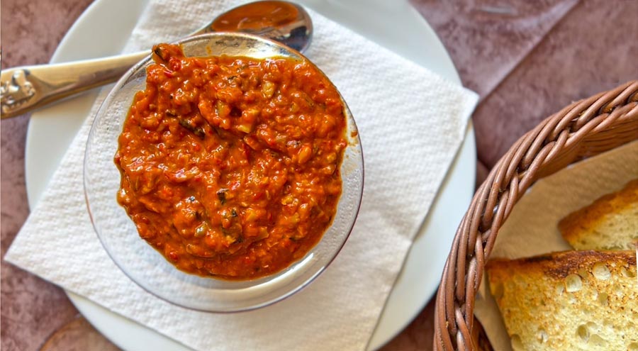 Gabrekova kuhinja u ajvar od paprika i patlidžana dodaje dvadesetak vrsta gljiva različitih tekstura: neke su usitnjene i kremaste, dok su druge nasjeckane na komadiće koji se osjete pod zubom, tako da Gabrekov ajvar ima netipičnu teksturu u kojoj se kremoznost miješa s blagim al dente efektom.