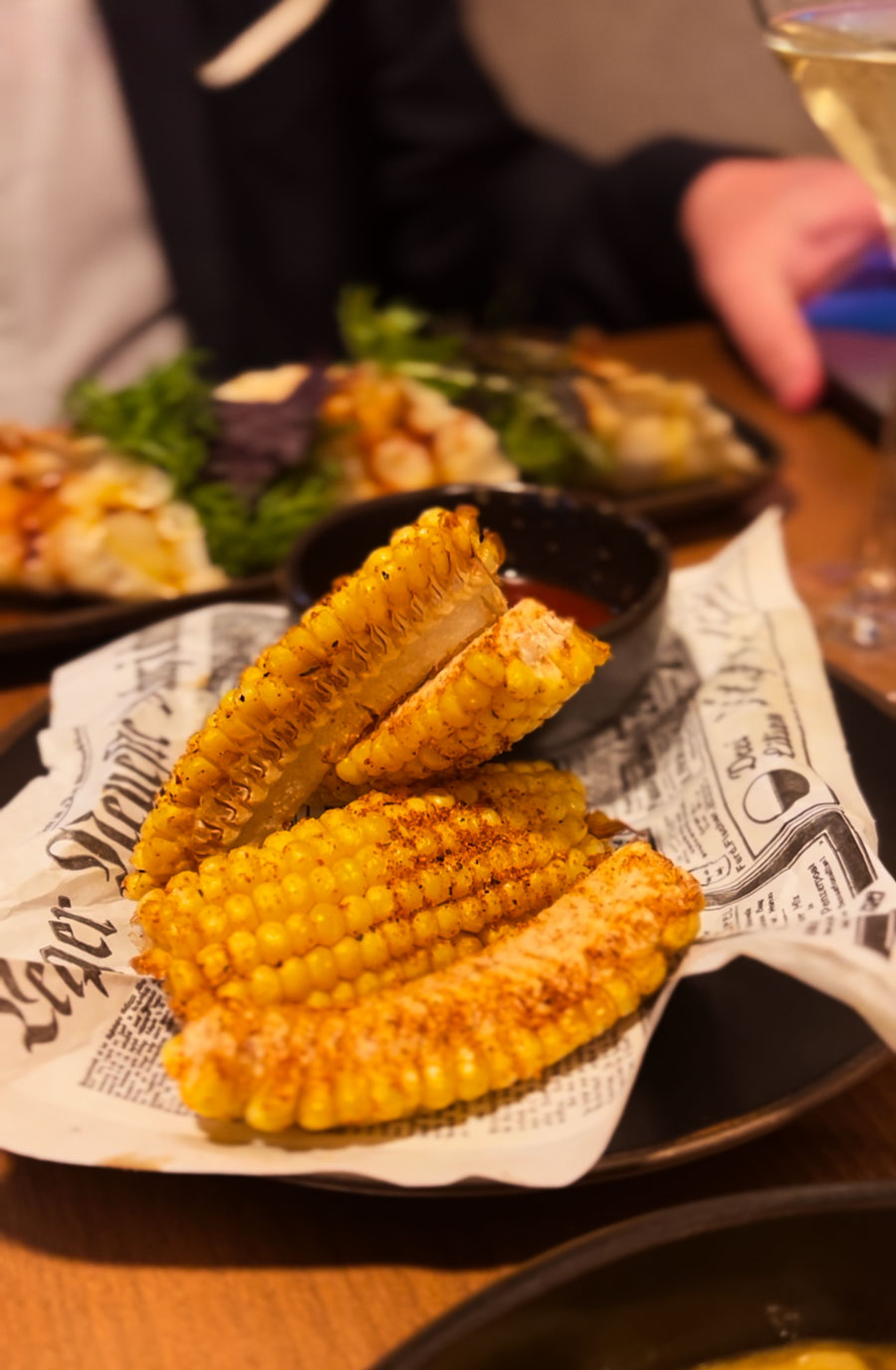Posebnu atrakciju čine prilozi. Izvanredni ljuti pečeni kukuruz pokazuje da bi u ovo doba godine brojni hrvatski restorani naprosto morali peći i kuhati klipove kukuruza, što se nažalost i dalje ne radi. Pečene rotkvice s lješnjacima i kozjim sirom također su bile izvrsne.
