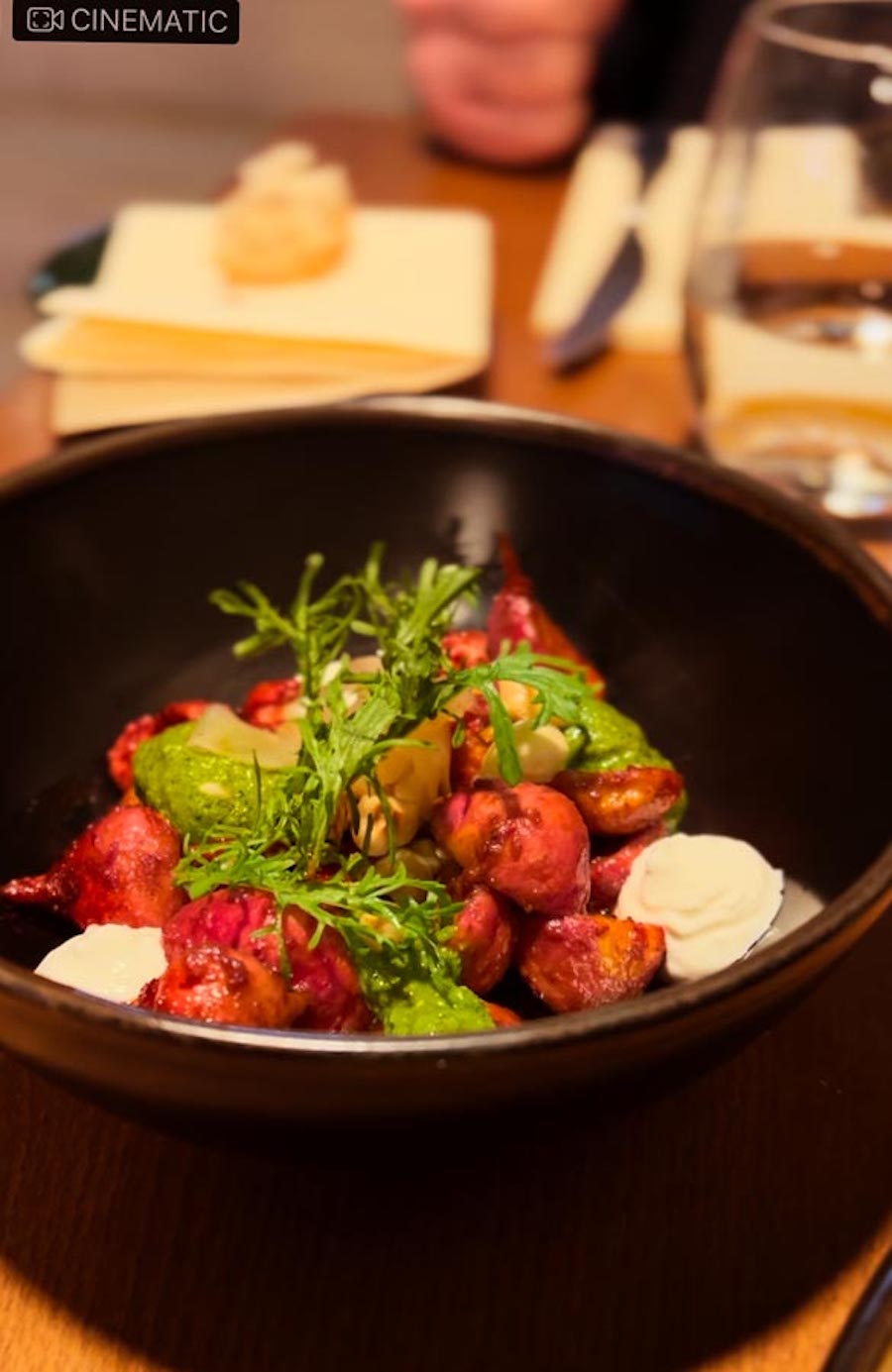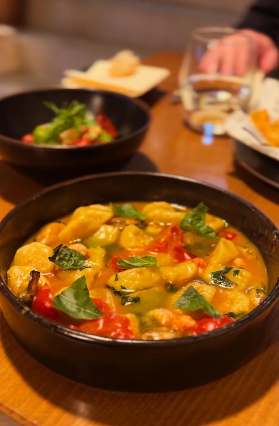 Ceviche od brancina bio je jednako uspješan, s onim autentičnim, vibrantnim začinsko-citrusnim nijansma u umaku koje su nas natjerale da umak doslovno popijemo iz tanjura. Njoki sa škampićima i dimljenim dagnjama još su jedan trijumf pažljivo elaborirane comfot food gastronomije, dok su gyoze punjene kokošjim mesom ukusnije i vizualno privlačnije nego u 99 posto hrvatskih azijskih restorana.