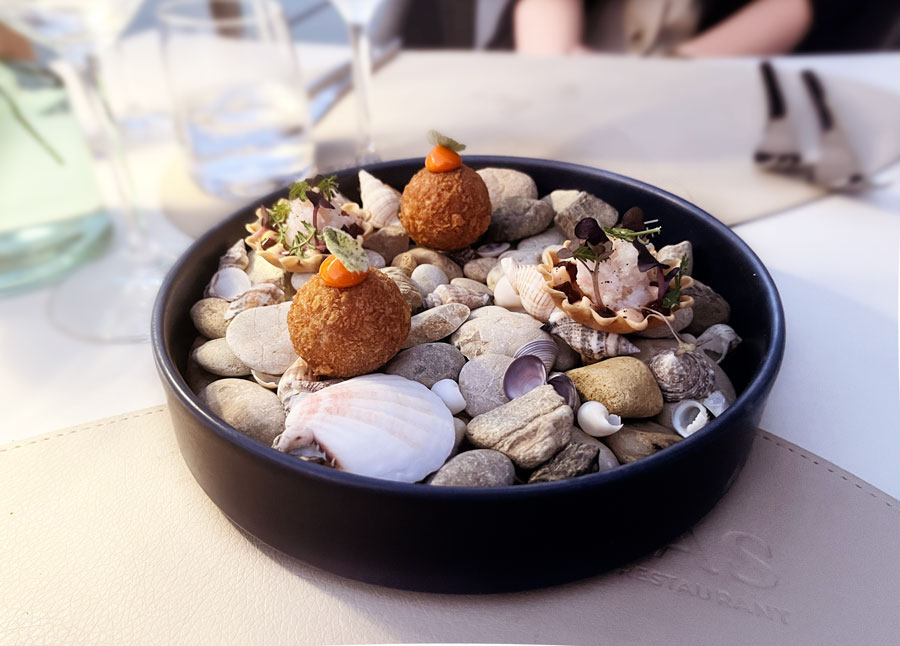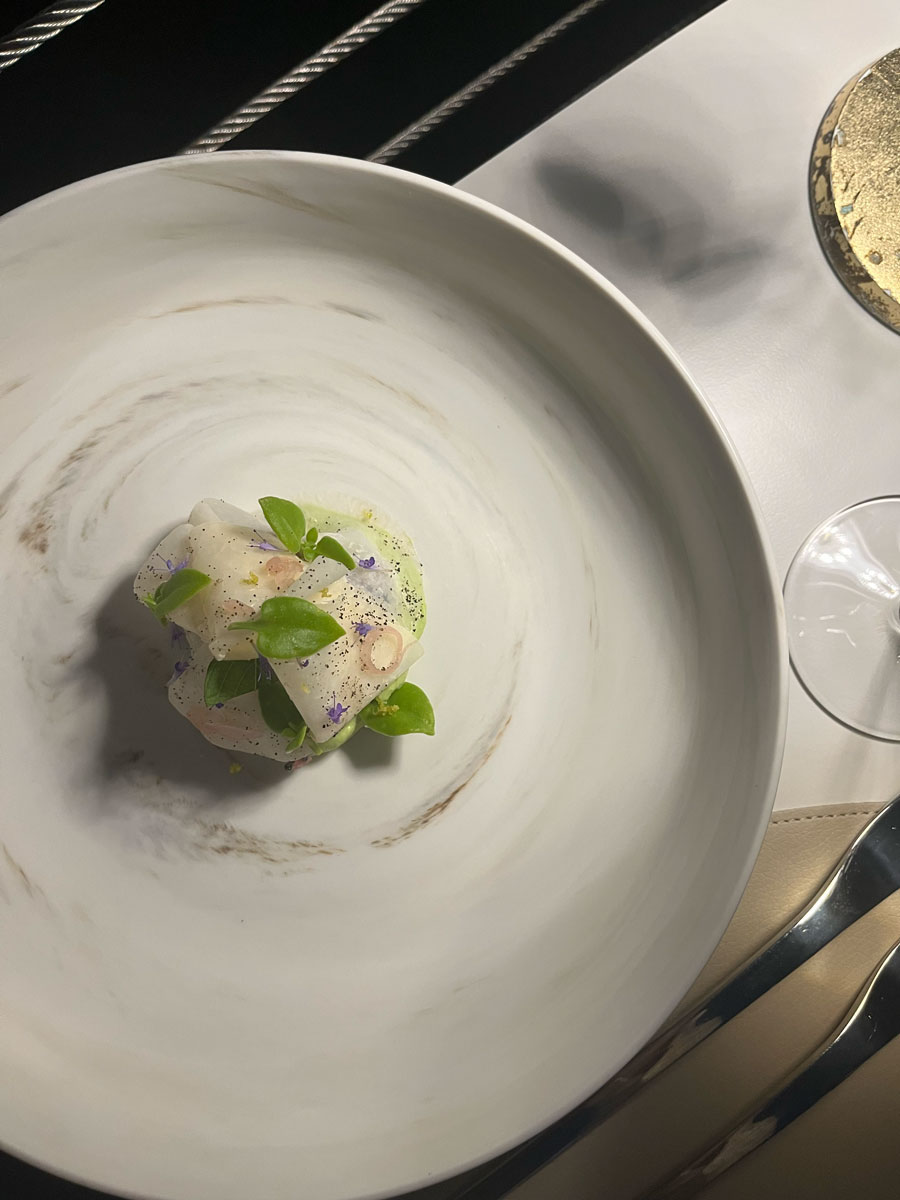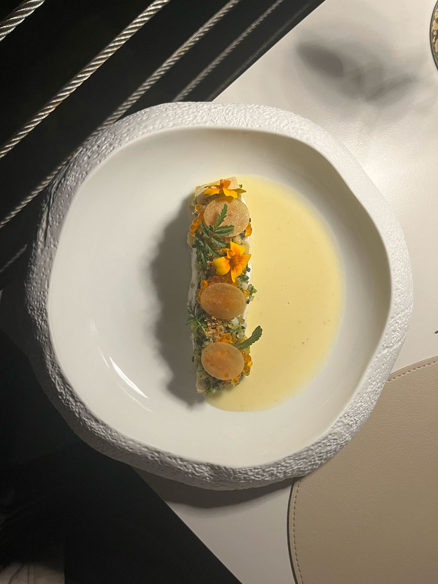 Amuse bouche u obliku chili con carne od boškarina fantastičan je mali zalogaj, kao i tartlet od kvarnerskog škampa. Debeli i mesnati file divljeg brancina s izvrsnom blitvom i tehnički perfektnim beurre blancom, pokazuje razliku između divlje i uzgojene ribe, a i govori o tome kako Bogdan zna s ribom jednako dobro kao i s mesom divljači.