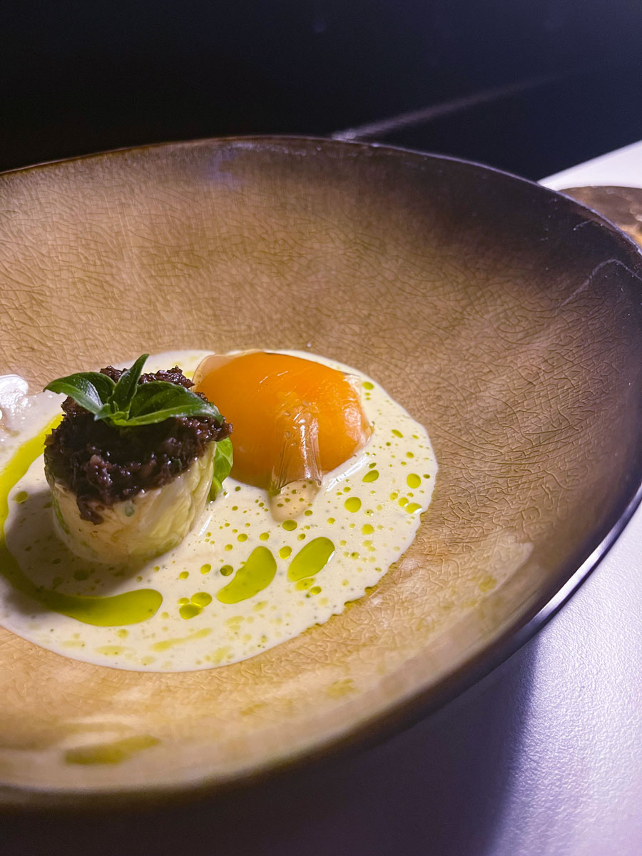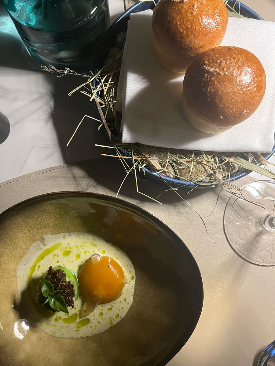Probali smo i nekoliko replika Apregeovih jaja u restoranima sa zvjezdicama, rekreacije klasičnih omleta i naravno raskošne verzije jaja s tartufima. No, jučerašnji dimljeni žumanjak Matije Bogdana jedno je od najboljih jela s ovom predivnom bazičnom namirnicom koje smo probali u zadnjih godinu dana. Bogdan, koji je ove godine preuzeo vođenje Aminessovih restorana u Njivicama i na Korčuli, pripremio je dimljeni žumanjak s umakom od paškog sira iz Kolana koji je glumio bjelanjak, i dodao mousse od pivca i tapenadu od šumskih gljiva, sve s neodoljivim toplim briošom.