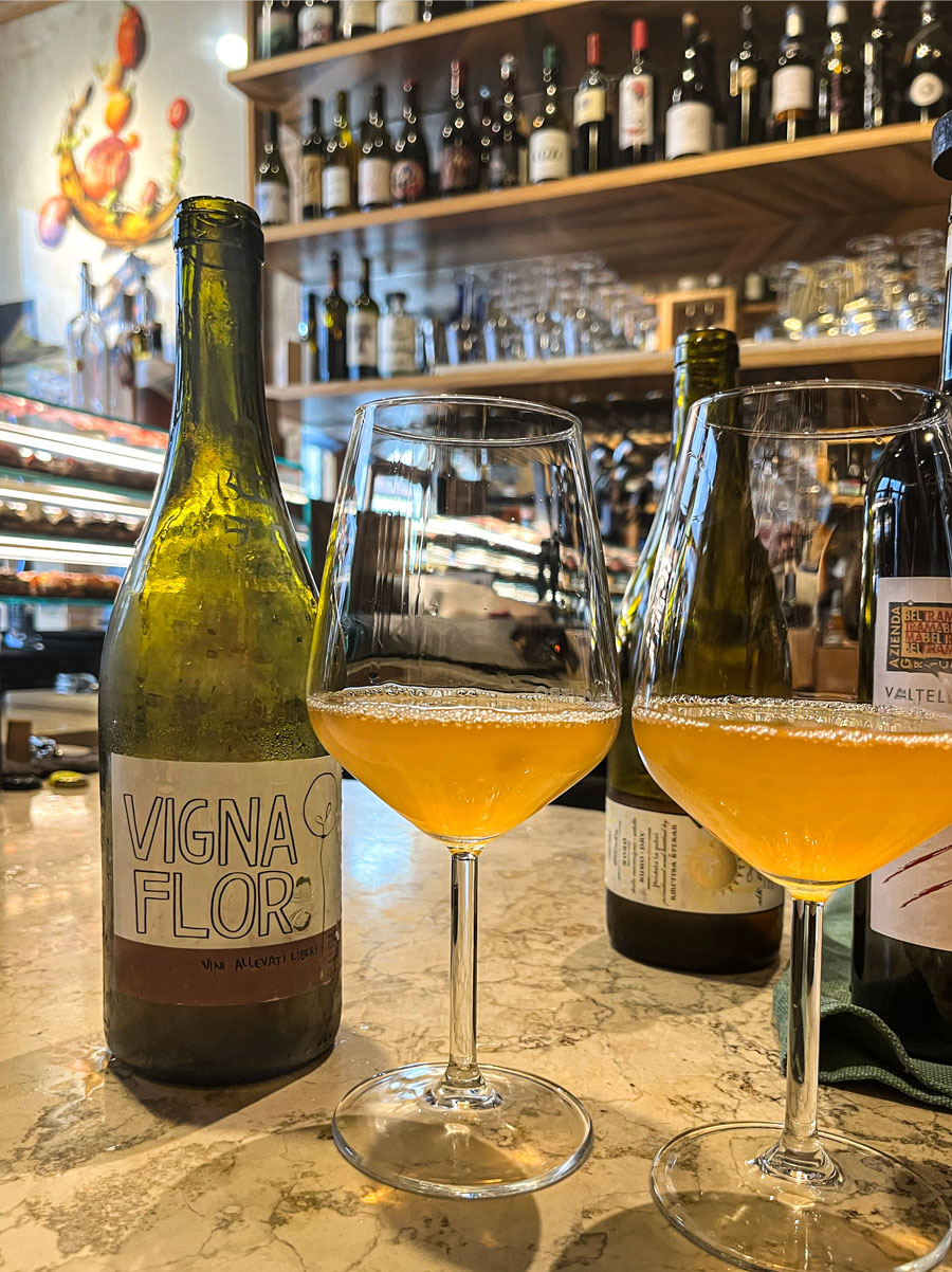 Vino Vero je utvrda prirodnih vina u Veneciji. Kad smo došli odmah su nam rekli da toga dana toče Gravnerovu Ribollu iz 2011. na čaše, koja stoji 18 eura. Vino Vero krcat je lokalnim jantarnim vinima, prirodnim vinima iz Austrije, Italije i Slovenije, a uspjeli smo uočiti i Piquentumov refošk na policama.