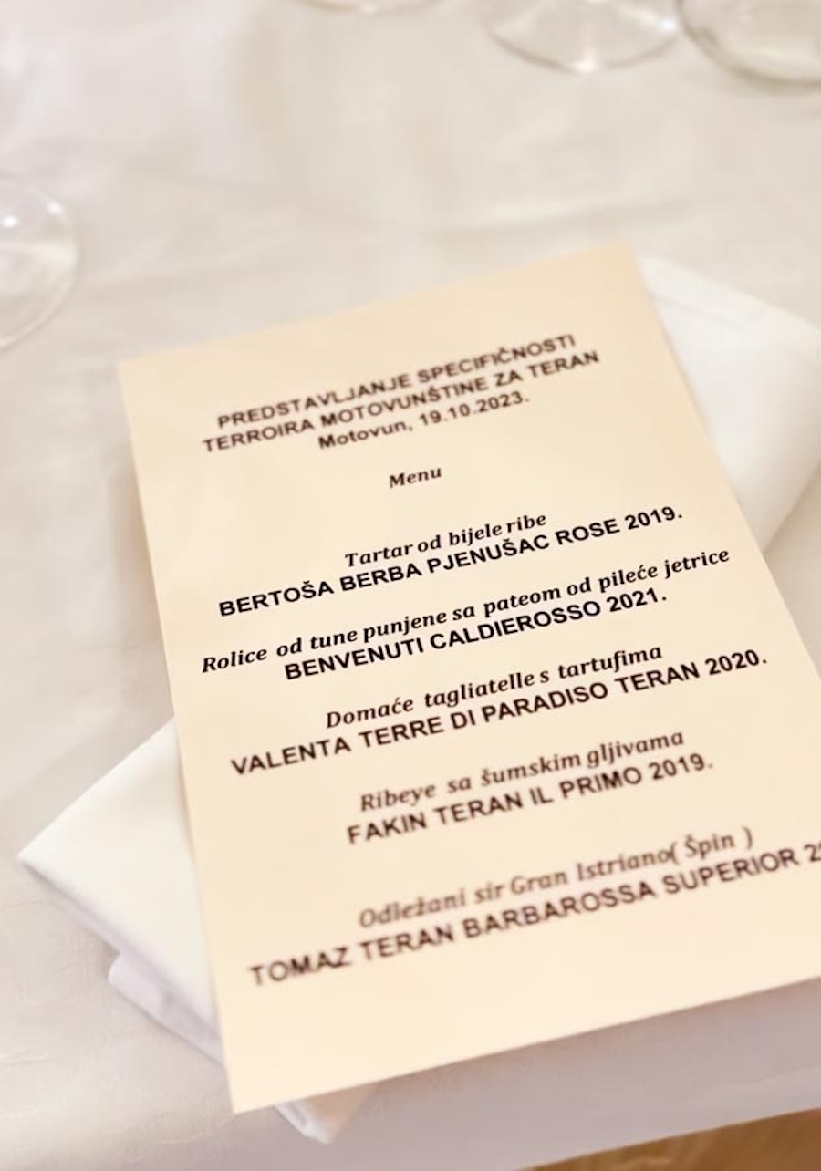 Motovunska večera posvećena motovunskom teranu i tartufima važan je korak u afirmaciji terana kao jednog od potencijalno najboljih hrvatskih crnih vina. Prezentaciju i večeru uobičajeno je duhovito i kompetentno vodio poznati istarski sommelier Emil Perdec. Perdec nije zaboravio spomenuti Davora Šišovića, nedavno preminulog istarskog novinara, koji je dubinski poznavao i entuzijastički afirmirao istarsku gastronomiju i vina.
