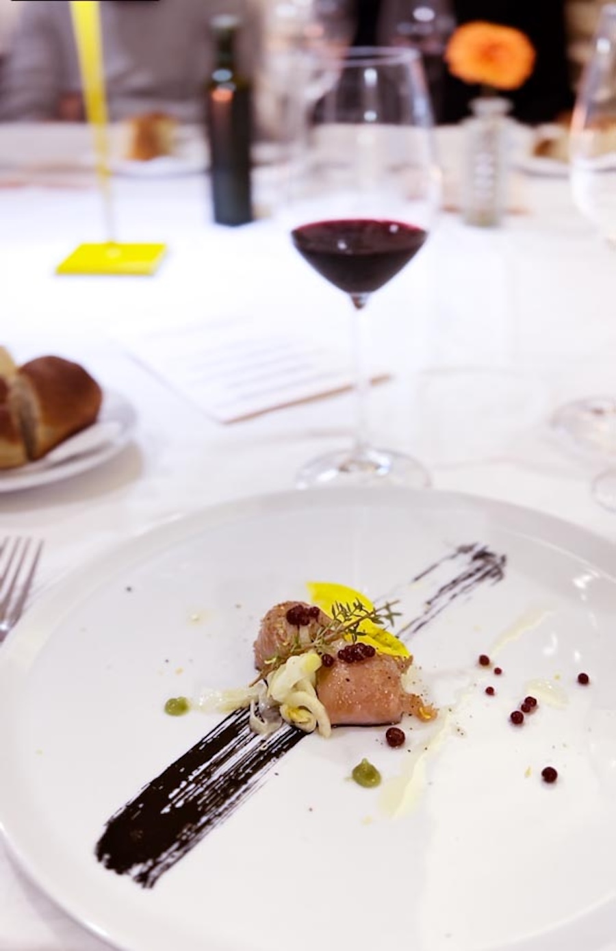 Fakinov Teran iz 2022. izvrstan je primjer mladog a već zaokruženog vina, dok odlično Livio Benvenuti iz 2019. pred sobom ima još petnaestak godina. Uz večeru, na kojoj su briljirale tagliatelle s puno raskošno mirisnih bijelih tartufa, pili su se među ostalim Bertošin ružičasti pjenušac iz 2019, Fakinov Il Primo iz 2019. i moćni Tomazov Teran Barbarossa Superior iz 2018. pred kojim je također još barem jedno desetljeće.
