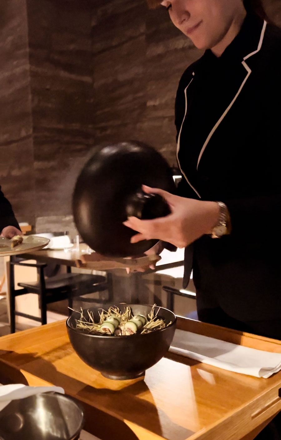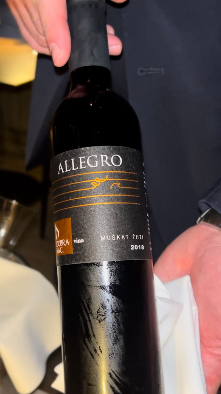 “Pralina” od kestena poslužena u kestenovoj kori izvrsno se složila s Dobravčevim Allegrom iz 2018. Prije Allegra popili smo par čaša Billecart Salmona, butelju koncentrirane i elegantne Vodopivčeve Vitovske i malo moćne Punta Grece 2020. uz crnu svinju. Cap Aureo i dalje je najautoritativniji restoran u Hrvatskoj.