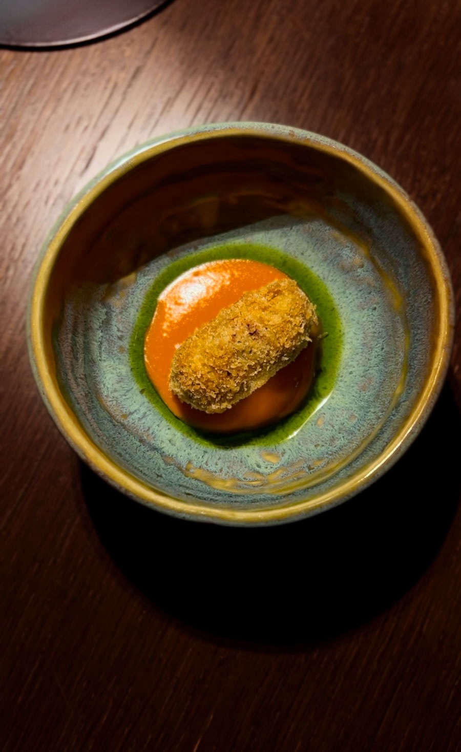 I niz drugih Vellinih jela s aktualnog menija Cap Aurea ostavlja dojam promišljenosti, senzibilnosti i snažnog profesionalnog autoriteta. Kebab od mrkve u istarskoj masali još je jedan primjer čudesnih okusa i tekstura izvučenih iz svakodnevnog povrća. “Arancin” od graha i tjestenine na šalši pokazuje kako može izgledati comfort food u kontekstu visoke kuhinje.