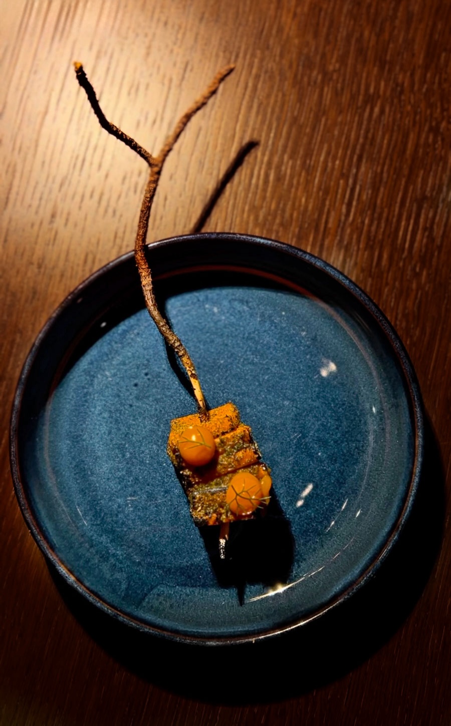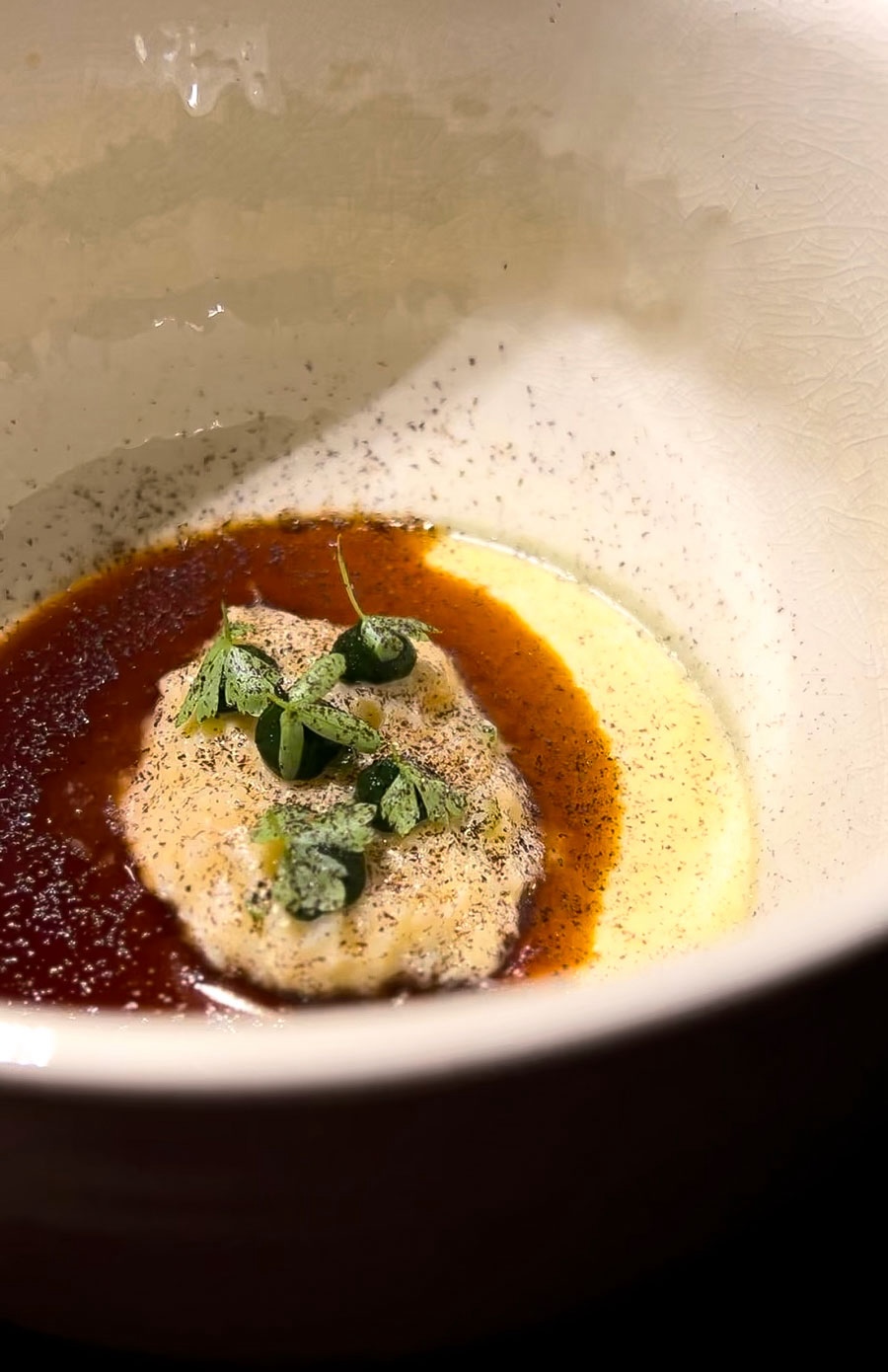 Vellina kriška spaljenog patlidžana glaziranog misom spada među najdojmljivije i najoriginalnije okuse i teksture koje smo bilo gdje probali ove godine. Patlidžan koji je pobijedio škampe, kavijar i tartufe, poslužuje se s tarteletteom punjenim kremom od krumpira: samo je tijesto višeslojno, hrskavo-meko i tehnički zahtjevno, fenomenalno ukusno.
