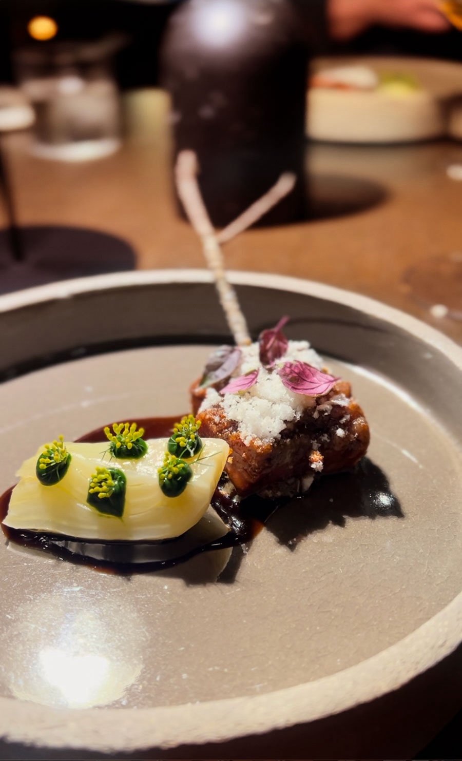Tanjur s pečenim kukuruzom, lardom, smokvom i gamberom rossom svojom preciznošću i čistim, gotovo razrezanim a komplementarnim okusima asocira na modernističke svjetske restorane s puno Michelinovih zvjezdica, dok je krema od Velog Jože i rakovice jedna od najneočekivanijih kombinacija koje smo kušali u zadnje vrijeme. Naposljetku, crveno pečeni sočni steak od crne slavonske svinje, poslužen s jusom s tartufima, topio se u ustima poput wagyua.