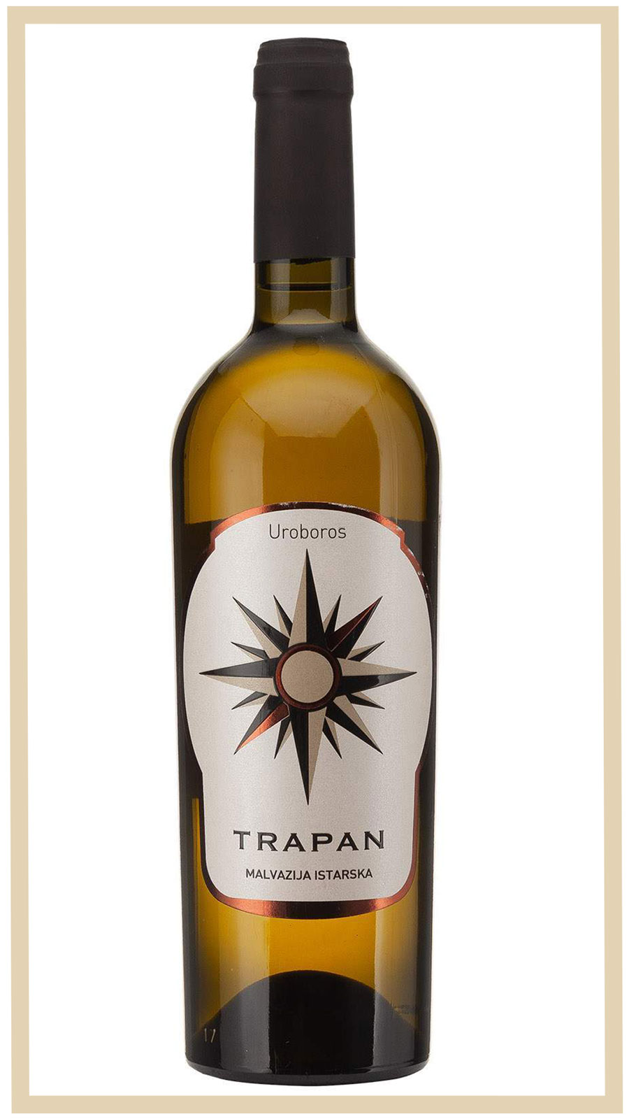 Bruno Trapan trenutno eksperimentira s raznim žanrovima i sortama. Ne želi proizvoditi mladu jednogodišnju malvaziju što je zaista hrabro, rose ima boju i gustoću claireta, dok malvazija Uroboros, Trapanov najjači brend, odležava tri ili četiri godine. Desetak dana kasnije kušali smo Uroboros iz 2019. koji je veoma, veoma dobar. Radi se o jednoj od najboljih odležanih malvazija iz te berbe. Uroboros je prije svega neobično precizan, bez ijednog off elementa i bez ijedne greške u strukturi.