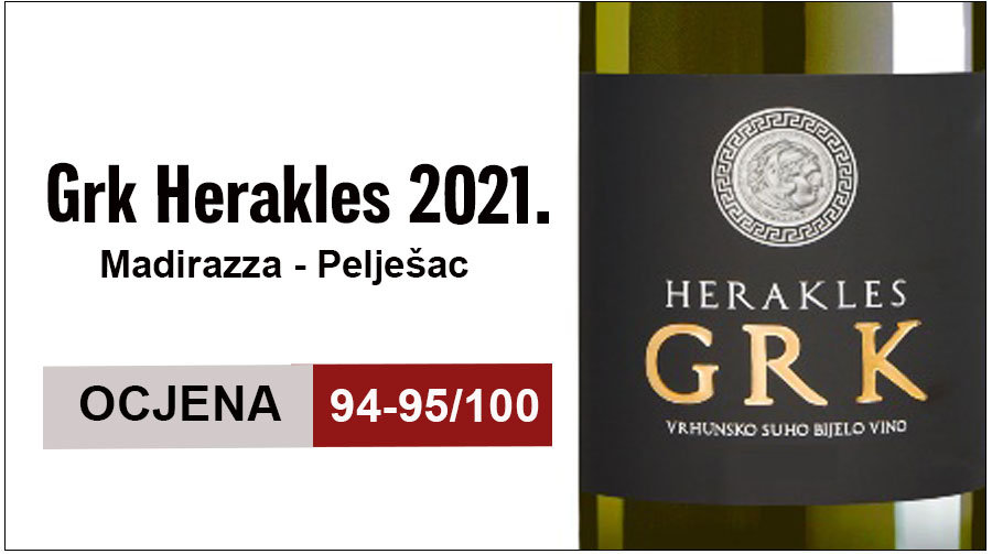 Herakles iz 2021. ujedinjuje raskošnu teksturu, veliko tijelo i visoku kiselinu. Vino je donekle diskretno školovano u hrastu i prepuno herbalno cvjetnih aroma. Kad smo ga prvi put probali u srpnju 2022. godine u podrumu obitelji Madirazza, podsjetio nas je, zbog kombinacije mirisa bijelog cvijeća i mediteranskih trava, na vrhunski Soave.