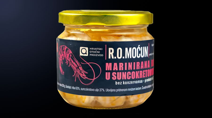 Ovih smo dana u lijepo uređeno kvartovskoj Mrkvici u Štriginoj ulici kupili marinirane kozice ribarskog obrta Moćun iz Kali s otoka Ugljana, glasovitog po višestoljetnoj ribarskoj tradiciji. Većina proizvoda s etiketom R.O. Moćun dolazi iz Jadrana, no ove su kozice uzgojene u prekooceanskim akvakulturama.