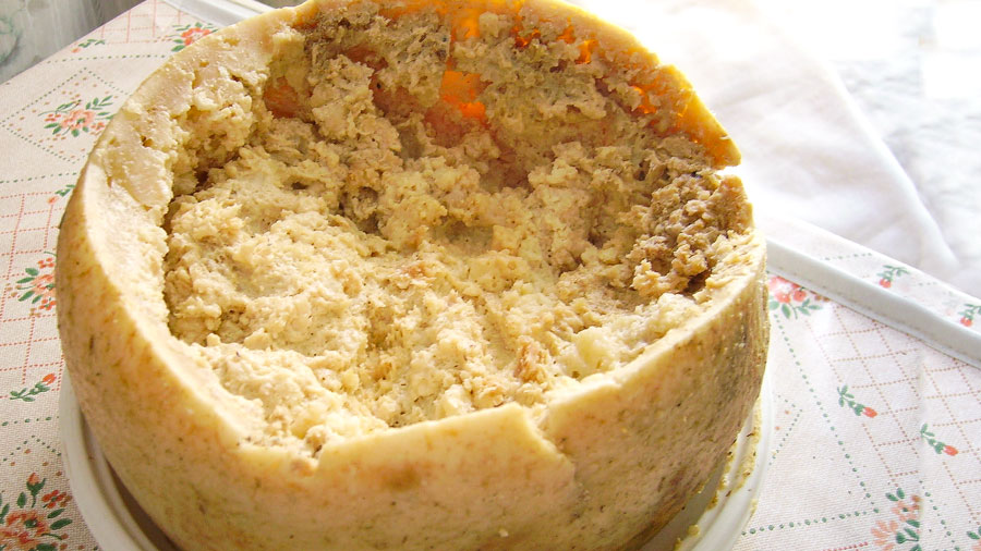 Da, ima divnih stvari na Sardiniji. Ima i ucrvljenog sira. Casu marzu je tradicionalni sardinijski pastirski ovčji sir, ciljano zaražen crvima, a jede se s rasplesanom larvom, crvima veličine i preko pola centimetra i sa svom sluzi koju marljivi i radišni crvi izlučuju. Riječ je o pecorinu, kojemu se nakon procesa primarne fermentacije otkida dio površine i dodaje larva (muhe vrste Piophila casei polažu svoja jajašca na površinu sira). Nakon što se crvi izlegu, počinju ga izjedati i probavljati odnosno želučanom kiselinom razbijati masti i razgrađivati ga do kremaste teksture.