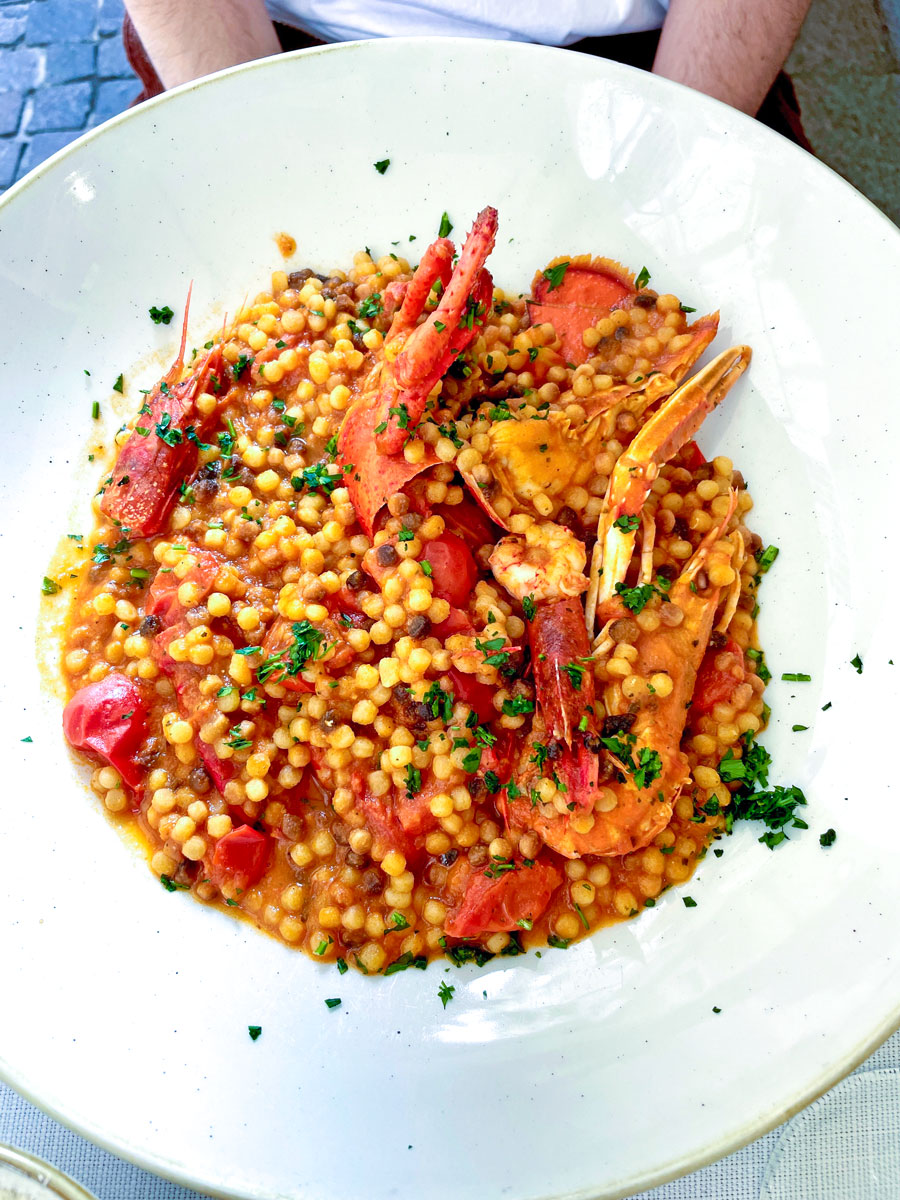 Torta di Madorle, bademova torta, identitetski razapeta između Sicilije i Sardinije. A tek pasta! pasta! pasta! Imam kapaciteta zapamtiti do 5 vrsta tjestenine koja nisu fuži – spaghetti, tagliatelle, bavette, lasagne… Padaju mi na pamet ravioli i pappardelle. Samouvjereno znam koje su razlike između navedenih vrsta, a sada sam tom impresivnom popisu dodala i sardinijske fregule, sitne okrugle bombice rađene isključivo od durum pšenice, sušene pa lagano zapečene na vatri. I malloreddus, male zamotane rebraste komadiće tjestenine. Očekivano, vjerni pratitelji tjestenine najčešće su rajčica, bosiljak i pecorino, ili nezaobilazni morski plodovi ili riba.