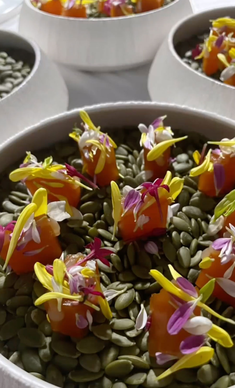 Colagreco je nedavno otvorio tri resotrana u Raffles, jednom od najluksuznijih londonskih hotela. Prije večere, gosti su uživali u spektaklu svijetlećih dronova i modnoj reviji za koju je Kineski zid obojan u specifičnu Cartierovu crvenu boju. Pjevala je hongkonška pop zvijezda Karen Tok. Meni je ostao uglavnom nepoznat.