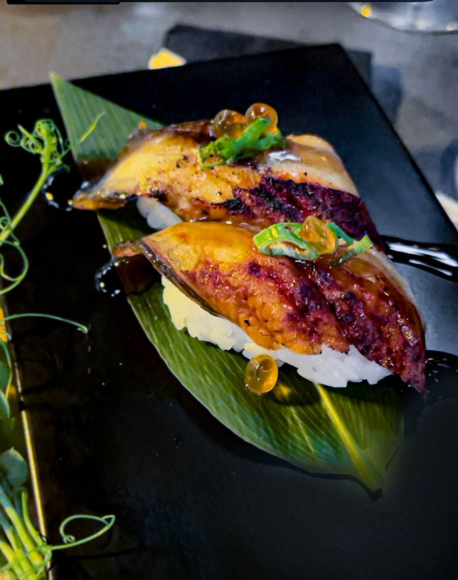 Zatim smo našeg ljubaznog konobara pitali za hamachi, japanski gof. Kojeg također nije bilo. Par minuta pošto nam je rekao da nema ni hamachija ni i tora, doznali smo da Evergreen ne drži na španjolski albarino, jedno od vina koje se dobro slažu uz sushi.